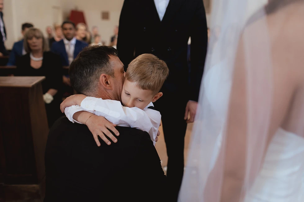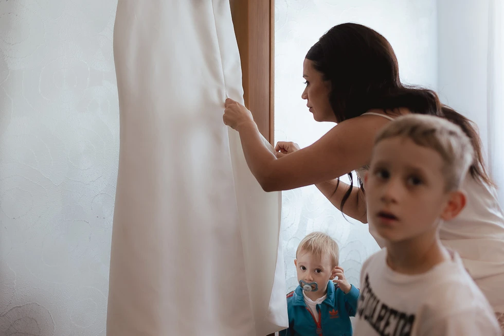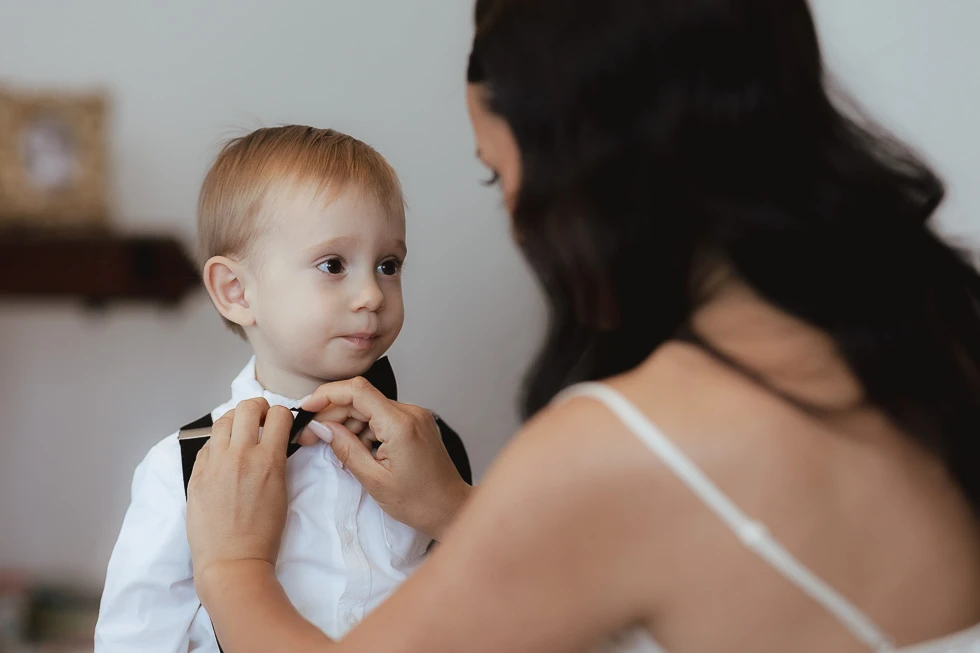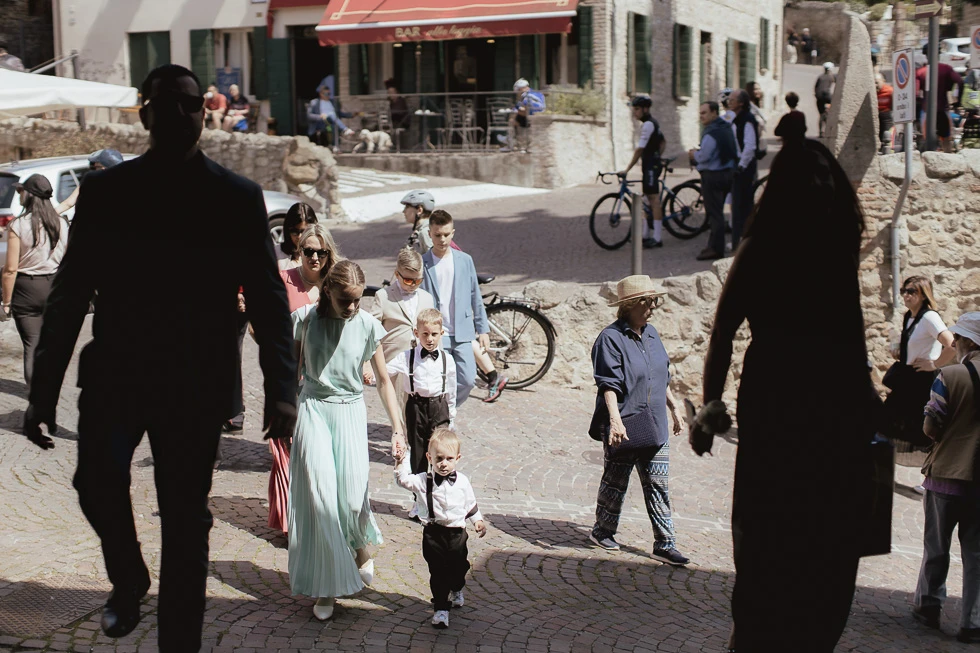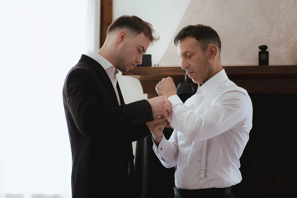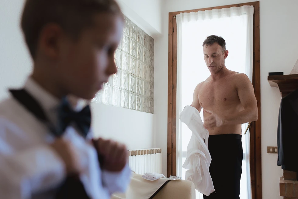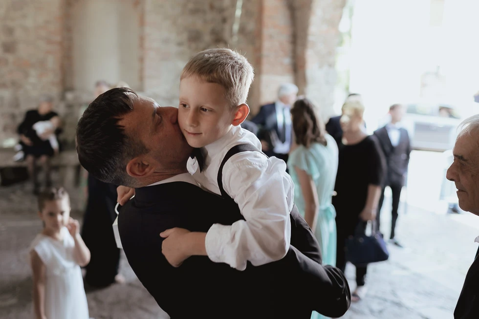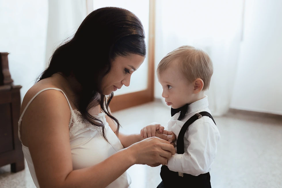 Seguivano ogni gesto, ogni attimo della preparazione, come se sapessero che quel momento meritava silenzio e rispetto. C’era chi restava accanto alla mamma e chi al papà, chi osservava con curiosità e chi, con naturalezza, ha aiutato il padre a vestirsi. Piccoli gesti, semplici, ma carichi di significato, che raccontavano un legame profondo, fatto di condivisione e presenza.