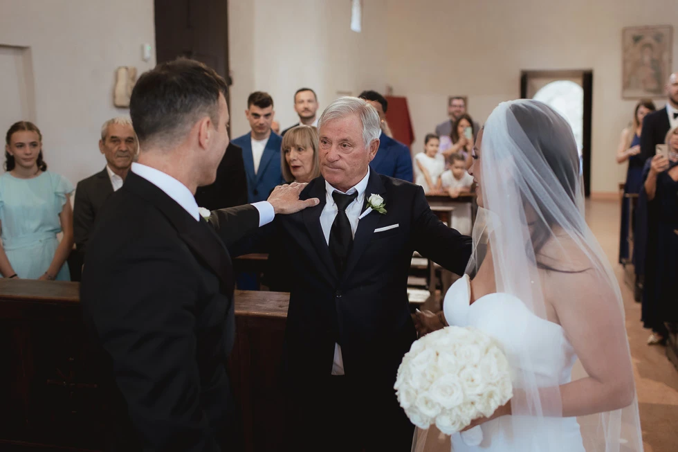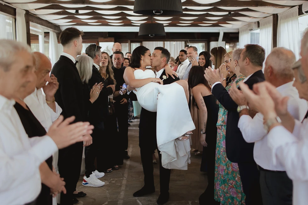 Durante lo scambio delle promesse, le parole si sono fatte fragili e vere. Qualche lacrima non è mancata, così come gli sguardi complici e le mani che si cercavano. I figli erano lì, testimoni silenziosi ma fondamentali, parte integrante di quel “sì” pronunciato con il cuore. Lo scambio delle fedi ha suggellato il momento, semplice e profondo, come solo le cose vere sanno essere.