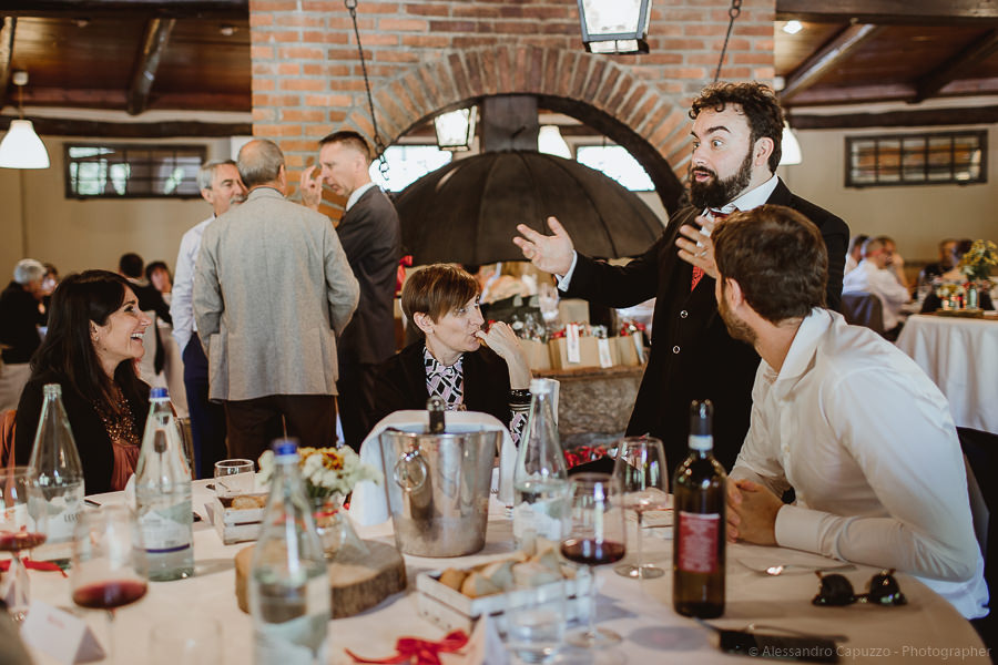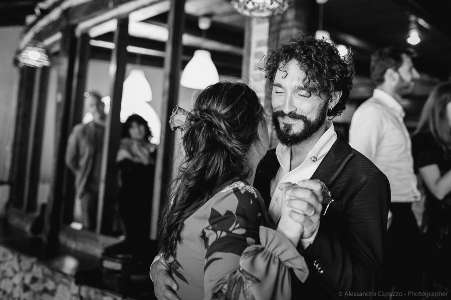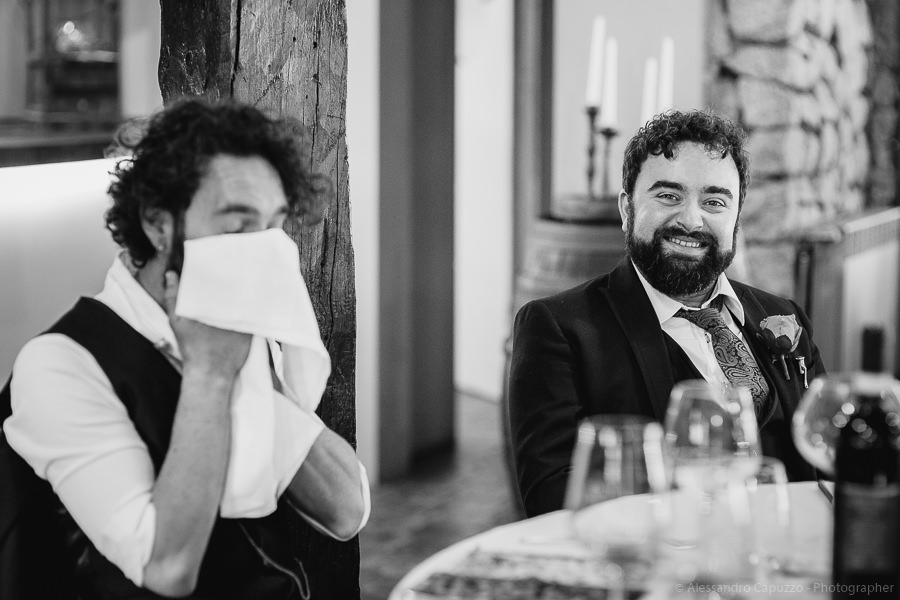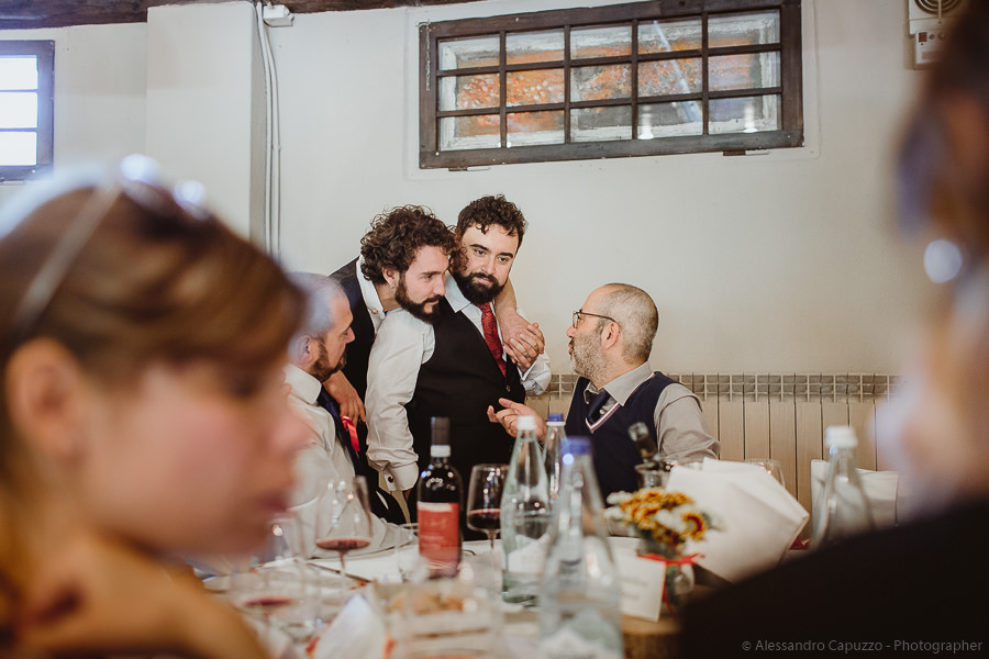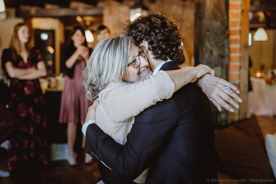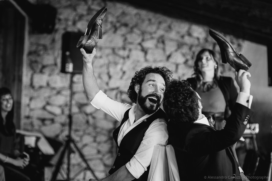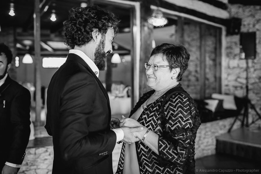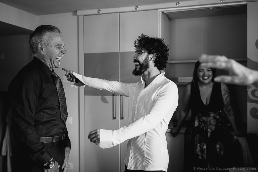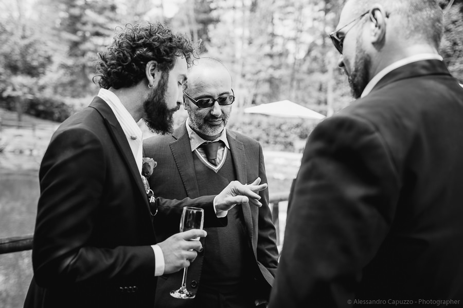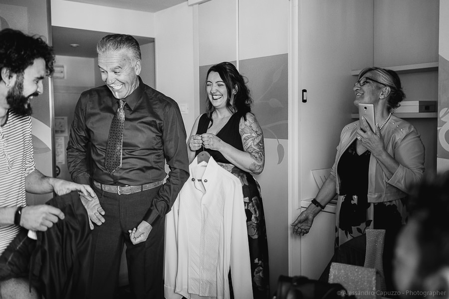 The couple is staying at Locanda di Orta and both men are together with their loved ones while getting ready. Luca is jolly, lively and always ready for a smile or a genuine laugh. With him are his parents, his sister and his cousin. Tiziano’s parents are in turn helping their son to get ready. Unlike Luca, Tiziano is reserved and shy but his bright eyes speak for him, and despite it all, he is certainly not prepared to waive a touch of transgression: wearing sneakers!