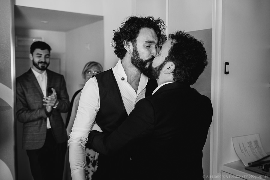 Before leaving for the city hall Luca’s father gives a speech for the couple. It’s a truly touching, intense moment that emphasises how engaged the respective families are in the life of these boys.
