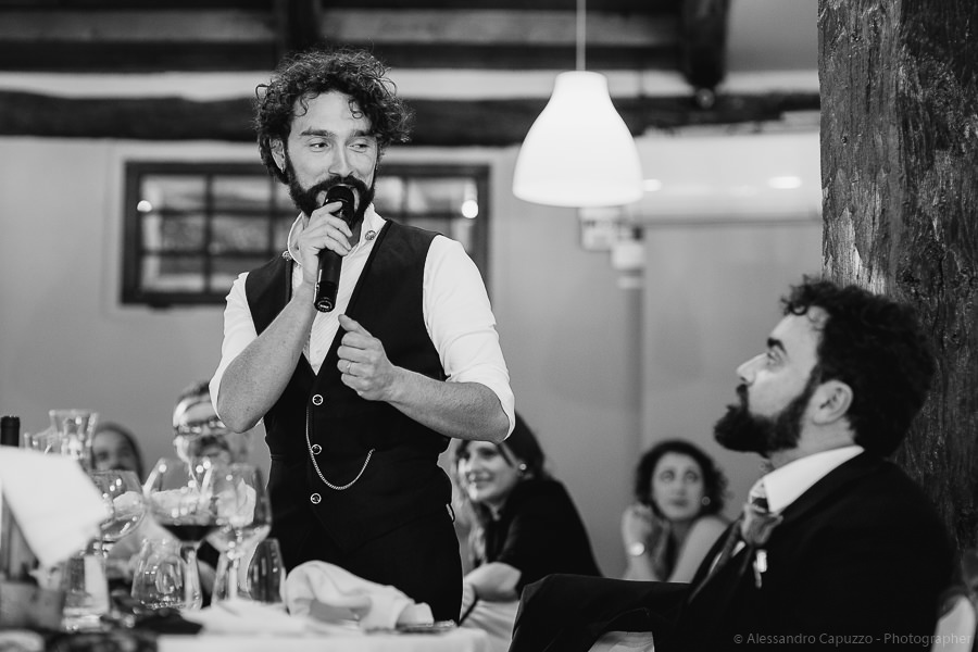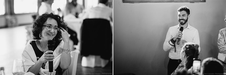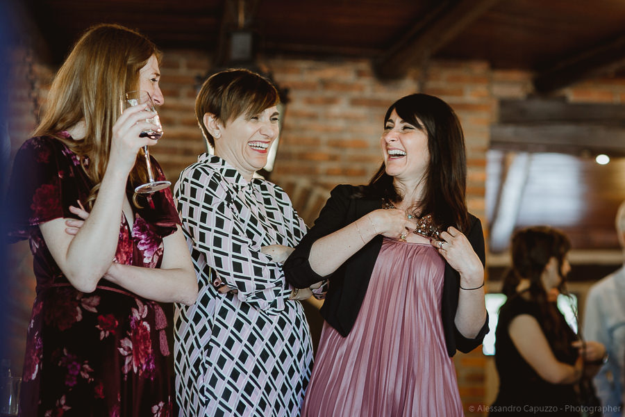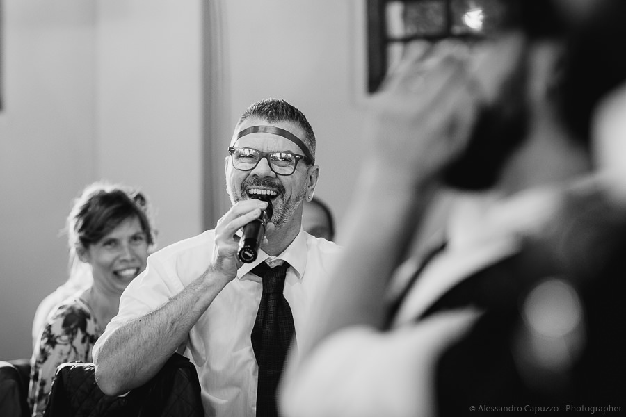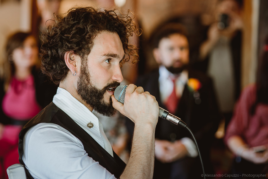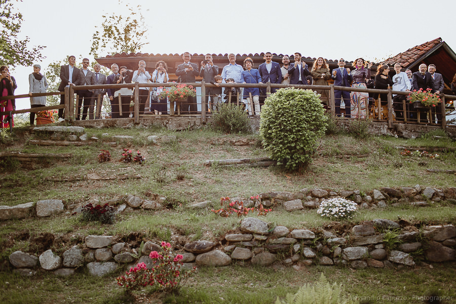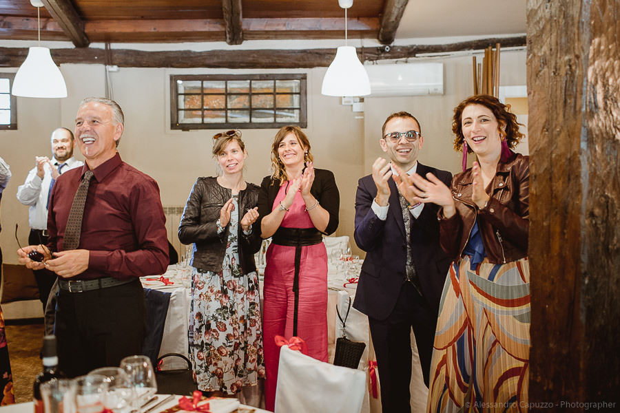 The last touches to the look of the newlyweds to be happen on the Locanda terrace, rainbow roses take their place as the boutonnières and soon after we are on our way. The couple approaches the city hall of Orta di San Giulio on a boat which allows them and their parents a grand entrance at the venue, where friends and family are waiting. After the civil rite, Daniele- one of the couple’s close friends- officiates the touching moment of the exchange of the rings accompanied by the melodic string music by “Emanuela Campagnoli”.
