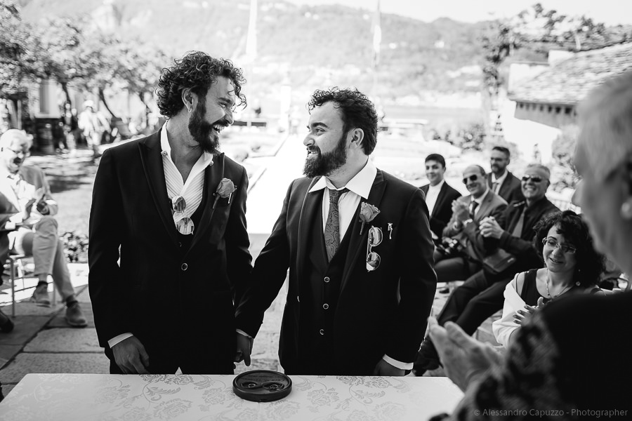 While I’m stealing the last shot at this same-sex wedding at Lake Orta, I realise that today I witnessed a true tribute to Love, to Purity, to the will of two people to be one forever, surrounded by the joyful souls of friends and family who made this occasion absolutely memorable. When uniting the hearts of Luca and Tiziano, Cupid fired the perfect arrow. Congratulations guys, may your life be bright, always!