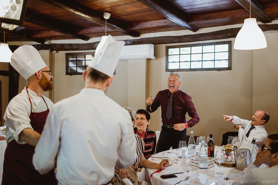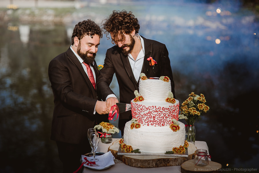 Karaoke, dancing and the guests’ touching speeches turn the event into a real marvel, never short of tears of joy nor brisk moments of happiness. The cutting of the cake overlooking the lake at sunset is the perfect conclusion for this day.